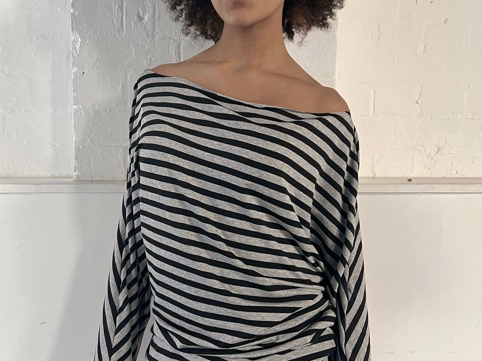 A comfortable, effortless slinks tee - draping over the shoulder. Crafted with a buttery soft and stretchy material that feels like a second skin.